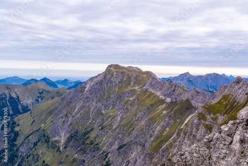 Fototapeta premium Rugged Alpine Ridge Beneath Clouded Sky