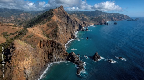 Fototapeta premium Rugged coastline with dramatic cliffs and ocean waves