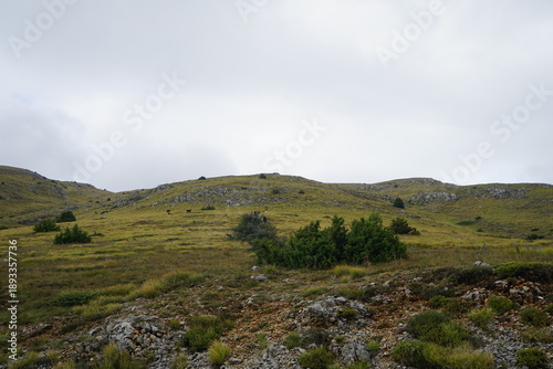 © grahof_photo, Fototapeta premium Rugged Mountain Landscape of Galicica National Park on a Cloudy Day (AI generated)
