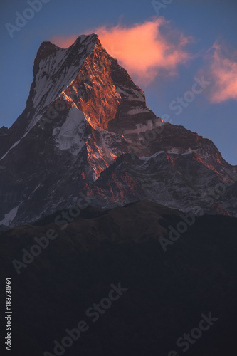 Fototapeta premium Rugged peak with some clouds glowing at sunrise