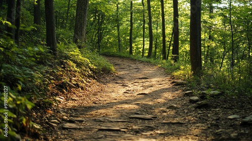 © BURINKUL, Obraz premium Rugged terrain of a forest trail, challenging and inviting adventure seekers
