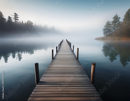 © Silvia Bogdanski, Fototapeta premium Ruhiger Steg am See im Morgennebel