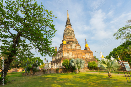 Fototapeta premium Ruin Pagoda of Wat Yai Chaimongkol in Ayutthaya ,Thailand.