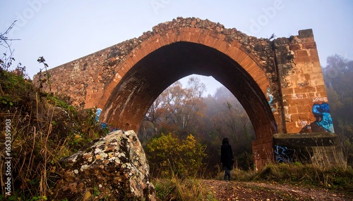 © Luthfi, Fototapeta premium Ruined arch bridge in mist