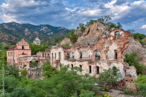 © Ippang, Fototapeta premium Ruined building complex nestled against a hillside