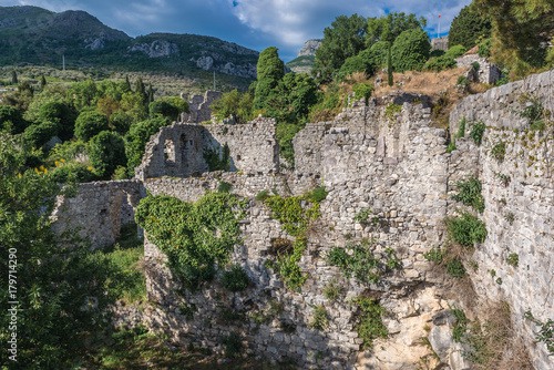 © Fotokon, Fototapeta premium Ruined buildings of Stari Bar fortress near Bar city in Montenegro