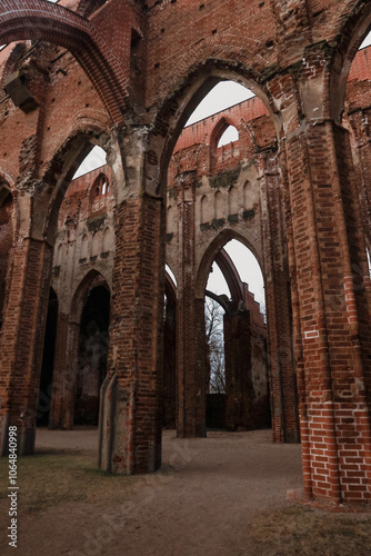 Fototapeta premium Ruins of a historic brick structure in Tallinn showcasing Gothic architectural elements