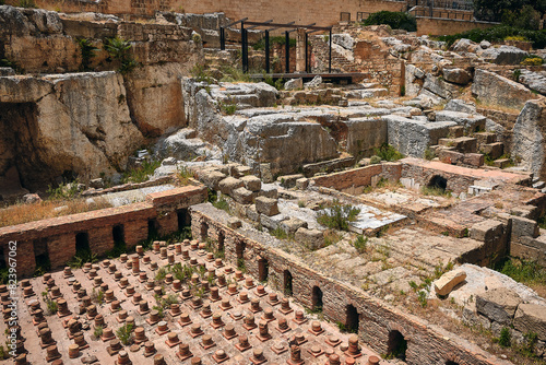 © Philipp Berezhnoy, Fototapeta premium Ruins of Roman bath in Downtown Beirut. Ancient archaeological site in the capital of Lebanon