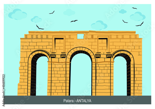 © Nigmet, Obraz premium Ruins of the ancient Lycian city Patara, Ancient city entrance door. Patara was at the Lycia (Lycian) League's capital. Antalya, TURKEY. Eps vector design