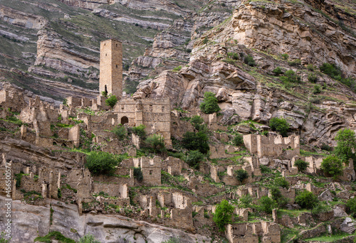 Fototapeta premium Ruins of the aul of the ghost of Kahib in the mountains of Dagestan
