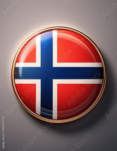 © Yvonne Bogdanski, Obraz premium Runder Norwegen-Button mit Landesflagge auf grauem Hintergrund