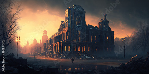 Fototapeta premium runed of city after war or disaster landscape scene , generative artificial...