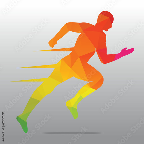 © HaSnI, Naklejka premium Running and Marathon Logo Vector Design. Running man vector symbol.