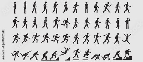 © JahirulIslam, Naklejka premium Running and walking people icons. Vector illustration, editable strokes. eps File