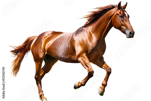 © Oksana_Latysheva, Obraz premium Running brown horse isolated on white background