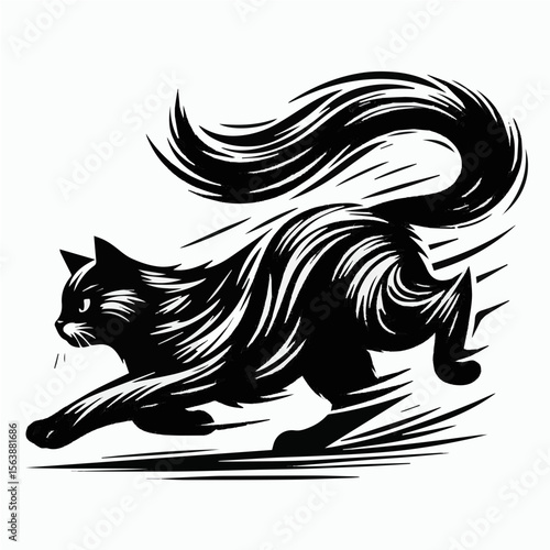 © Sani Vector Studio, Obraz premium Running Cat Brush Style SVG