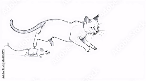 © Alaa, Obraz premium Running Cat Sketch