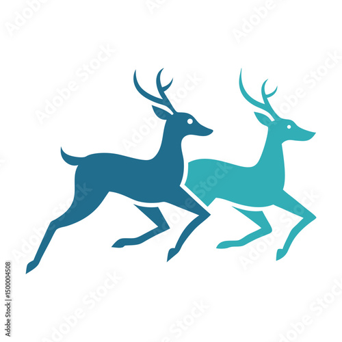 © Sujit, Fototapeta premium Running Deer in Snowy Landscape – Elegant Stylized Vector with Cool Color Tones