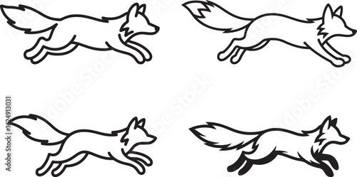 Fototapeta premium Running Fox Silhouette Line Vector Icon Set, Wild Animal Bundle, fox walking symbol art, fox illustration set.