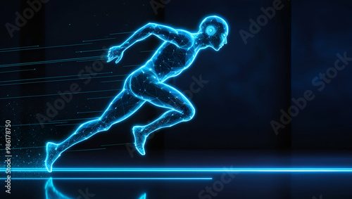 Fototapeta premium Running man digital art, silhouette of running person/ Glowing figure of...