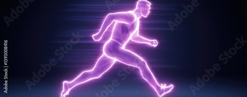 © Pixelbiz, Fototapeta premium Running Man Motion Graphic in Neon Style on Dark Background