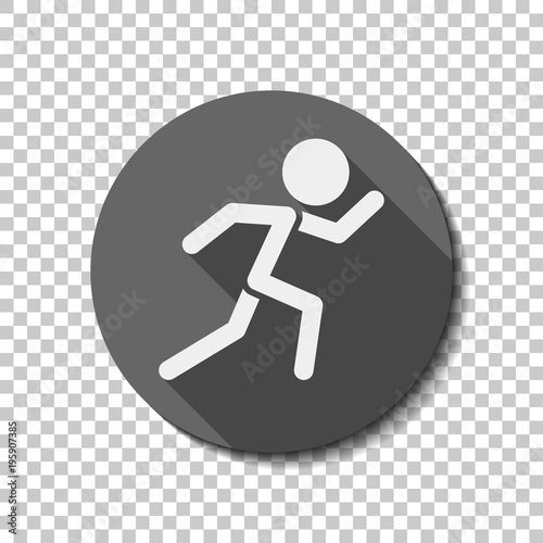 Fototapeta premium running man. simple icon. White flat icon with long shadow in circle on transparent background