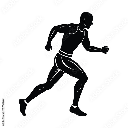 © Crea Vector Designer, Naklejka premium Running Muscular sports Man silhouette icon with black color vector illustration Design