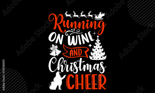 Naklejka premium Running On Wine And Christmas Cheer- christmas T shirt Design, Hand drawn lettering and calligraphy, Svg Files for Cricut, Instant Download, Illustration for prints on bags, posters