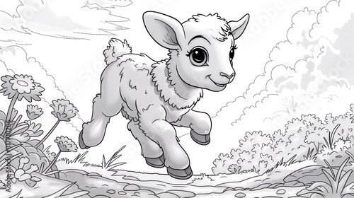 Obraz premium running sheep, black and white illustration suitable as a coloring book for...