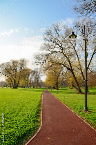 Obraz premium Running track in the park. Sunny day in the park.