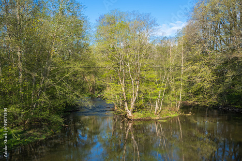 © Lars Johansson, Fototapeta premium Running water in a lush forest at springtime