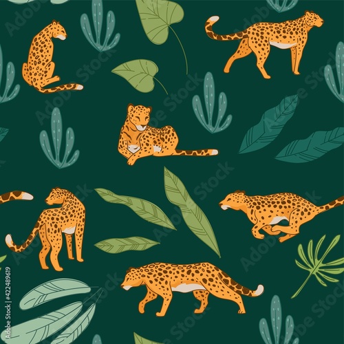 Naklejka premium Running wild animal, leopard or cheetah pattern
