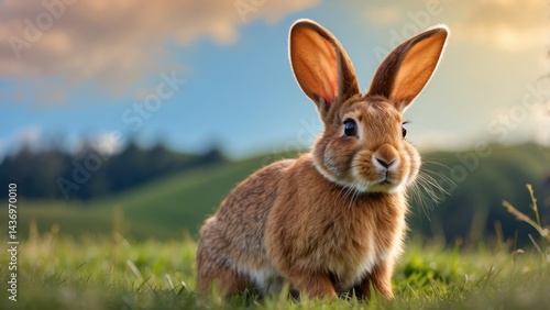 © Sifa, Fototapeta premium "Running Wild Hare in Snow – Fast Brown Rabbit in Winter Scene"
