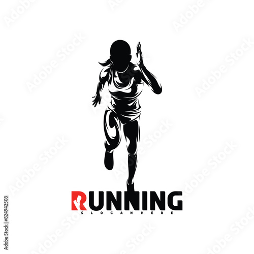 Naklejka premium Running woman design vector illustration on white background. Silhouette...
