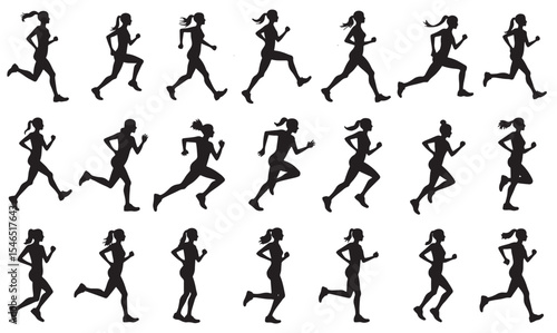 © BK2003, Naklejka premium Running women vector set of isolated silhouettes