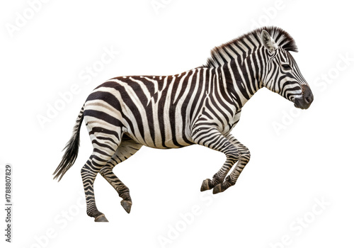 © Evans, Obraz premium Running zebra PNG isolated on transparent background, wild animal with black and white stripes for design and educational use