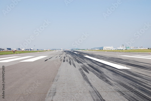 © MasaoYamada, Fototapeta premium Runway Tire Marks and Threshold Markings