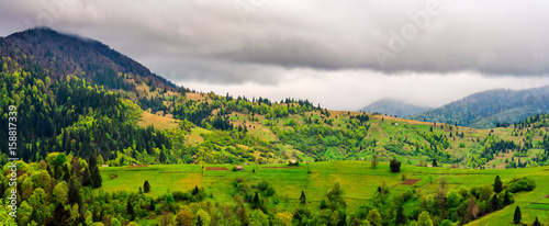 Naklejka premium rural area in mountains on overcast day