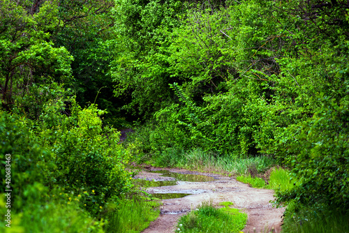 © rostovdriver, Obraz premium Rural dirt road in village area