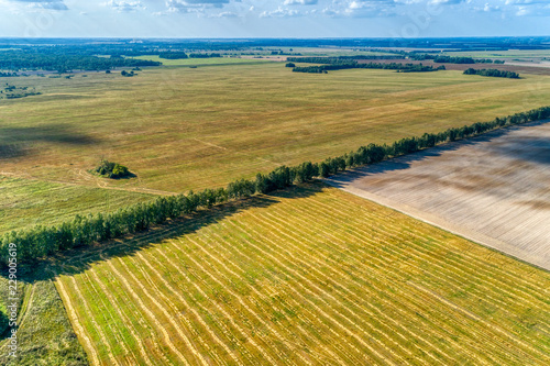 © nordroden, Obraz premium Rural flat landscape. Fields separated by forest belts.