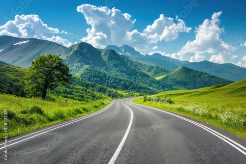 © LimeSky, Naklejka premium Rural highway with scenic mountains landscape