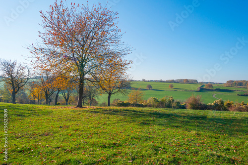 © Naj, Obraz premium Rural hilly landscape in fall colors in sunlight in autumn