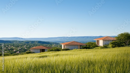 © Ruliyah, Obraz premium Rural Houses on Hilltop with Expansive View