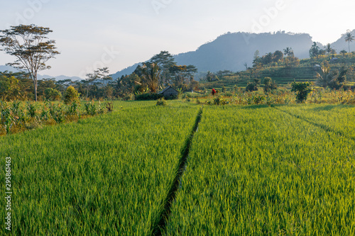 © Per, Fototapeta premium rural landscape in bali indonesia with green field and blue sky