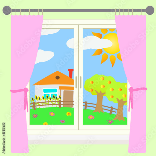 © sergey89rus, Fototapeta premium Rural landscape outside the window.