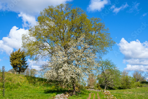 © Lars Johansson, Fototapeta premium Rural landscape view with flowering trees in the spring