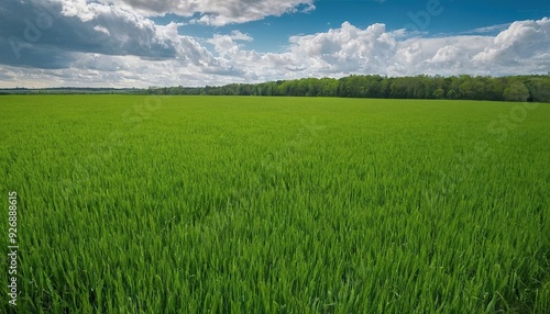 Fototapeta premium Rural landscape with field and blue sky with clouds spring seasonal natural...
