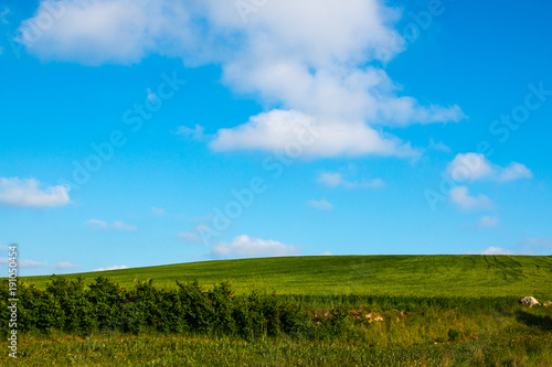 © Cesare Palma, Fototapeta premium Rural landscape with green cultivations and blue sky, south italy