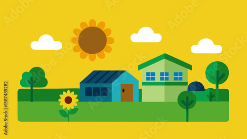 © Prodip, Fototapeta premium rural landscape with house and trees