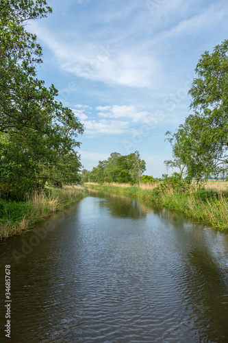 © Sunnydays, Fototapeta premium Rural Landscape With River In North Germany